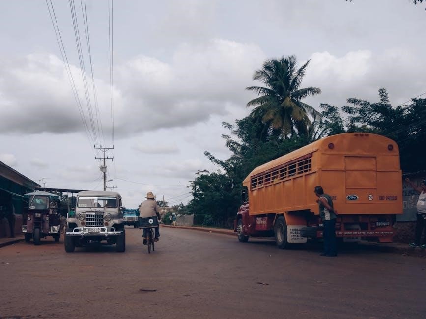 The manual also outlines procedures for jump-starting the vehicle safely, avoiding potential hazards. Understanding dashboard symbols and indicators is vital for recognizing potential mechanical issues. Never operate the vehicle if you are impaired or unfamiliar with its controls; Refer to the manual for comprehensive guidance on safe driving practices and emergency response protocols, available on platforms like Libble.eu.